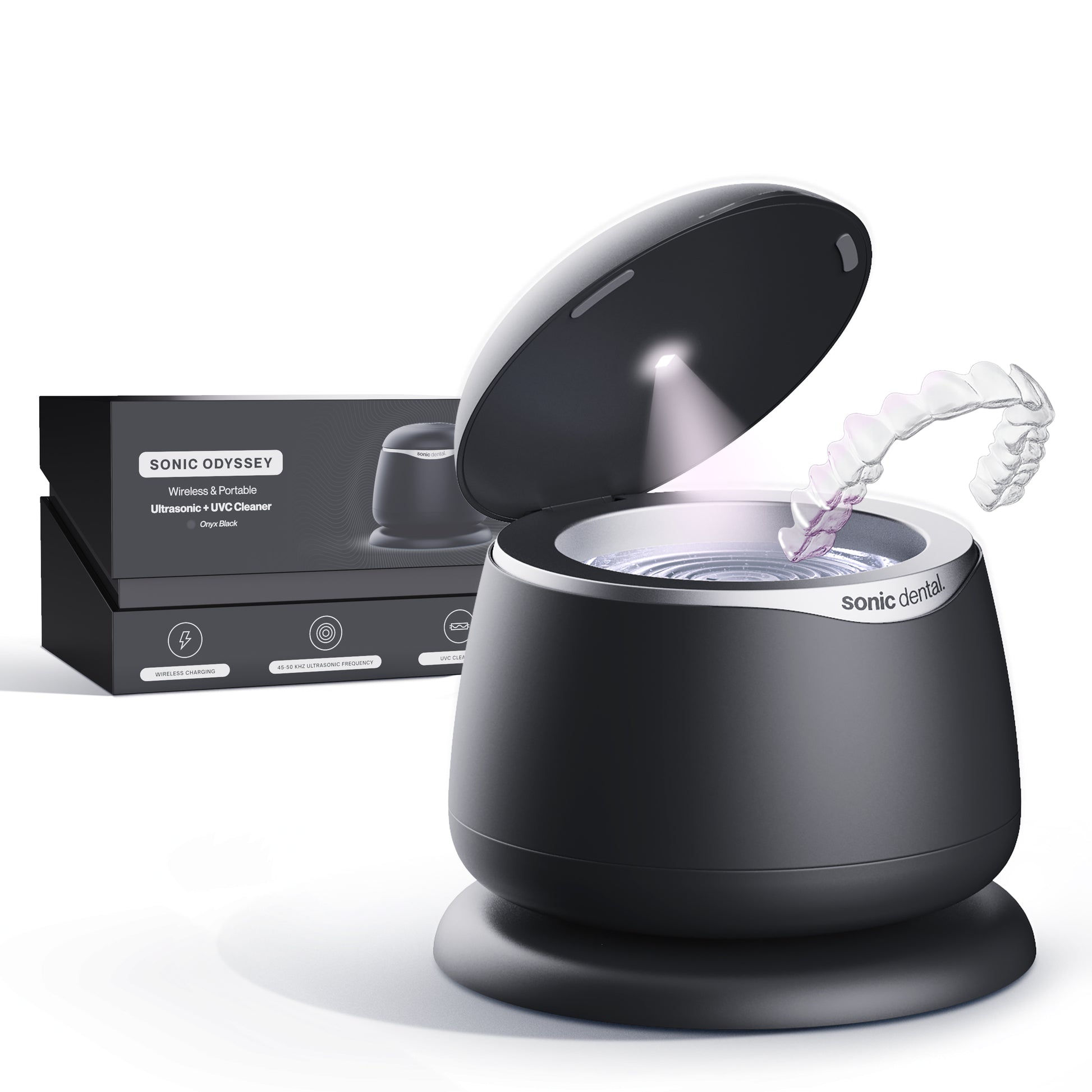 Meet Sonic Odyssey, the wireless ultrasonic + UVC cleaner designed by UK dentists that delivers premium cleaning anywhere, in just 3–5 minutes.